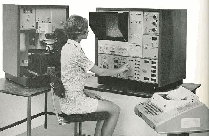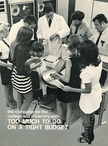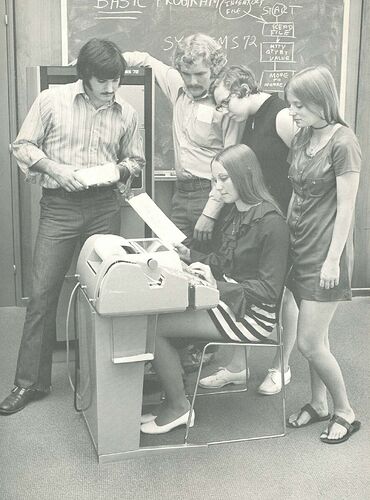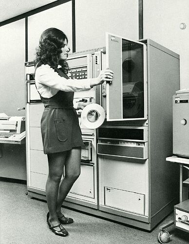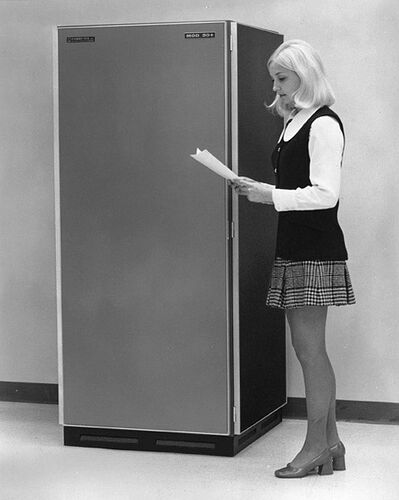 The notion that sex sells tech was exploited to grotesque ends during the era of the early gigantic computer systems.These vintage pictures scanned from old magazines and newspapers of those bygone decades, depict attractive women wearing as little clothing as the decency of the day allowed promoting and advertising computers.