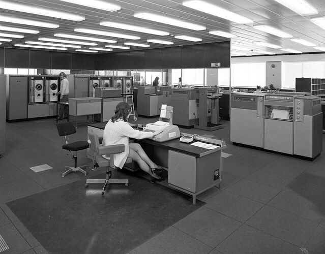 The increase in the use of computers was accompanied by major technical, organizational, and social change at the workplace, which caused existing business processes to be largely adapted to electronic data processing, resulting in rapid growth in requirements for new work qualifications in offices and in manufacturing.
