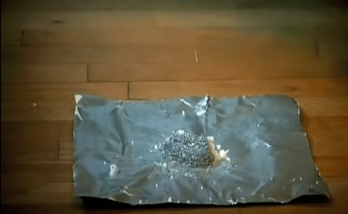 The americium and radium are placed together within a sheet of aluminum foil. On the right is seen the finished product: a reactor held together by duct tape and capable of making plutonium. Images by Robert Eagle.