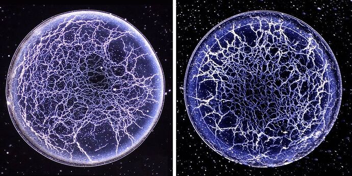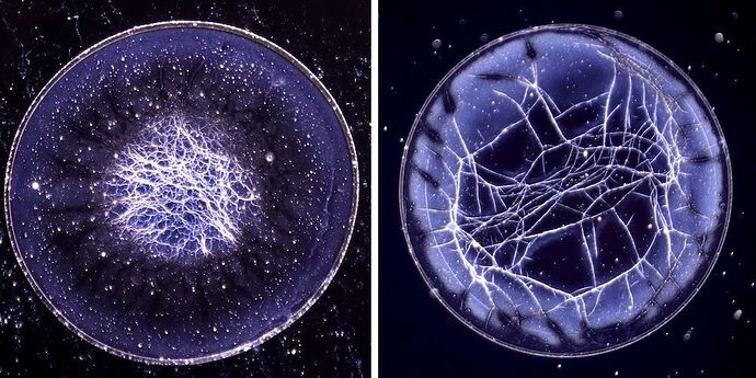 Williams and Velev got to work by letting raindrop-sized samples of bourbon evaporate on glass slides and examining the results under a microscope. While particles in coffee and tea migrate to the outer edge as the liquid evaporates—the so-called coffee-ring effect—the bourbon left behind a uniform film. This was not surprising, as a previous study had shown that Scotch behaves the same way. But when they diluted the bourbon to about 40 proof, curious web-like patterns formed.