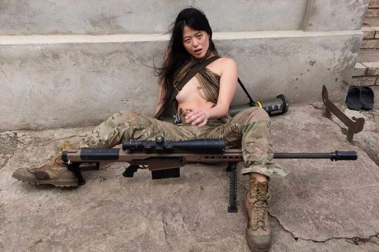 Koung has posted strip teases during air raid sirens and photos with rocket launchers on her social media accounts.